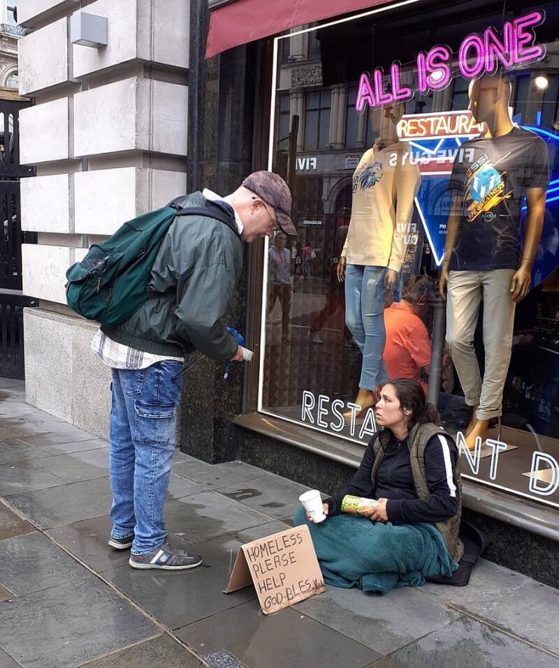 Uit ervaring verwachtten we weer bedelaars tegen te komen in London. Bedelaars, vaak gehandicapt, en Roma. In Nederland hadden we rollen biscuits gekocht en pakjes appelsap. We vertelden hun God te danken in de naam van de Here Jezus Christus voor alles wat ze kregen. We maakten een praatje met hen, vroegen hoe het kwam dat ze in deze situatie terecht waren gekomen, en schudden handen.