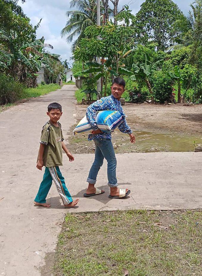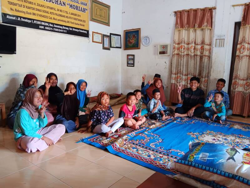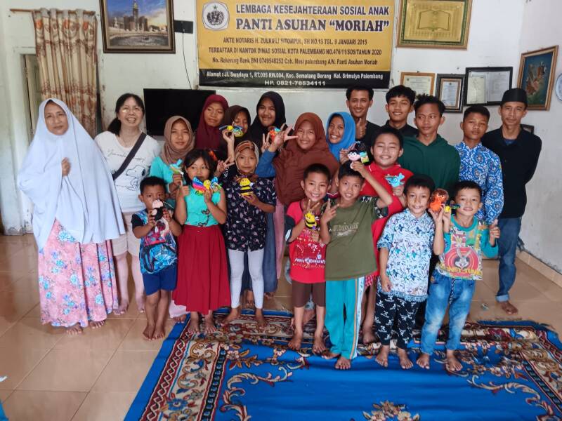 In dit weeshuis wonen zo'n twintig wezen met hun begeleiders. Onze contactpersoon deed onderzoek en vond dit weeshuis, ergens in een uithoek van Palembang. We voorzagen hun van een grote voorraad voedsel en deelden een aantal knuffels uit.
