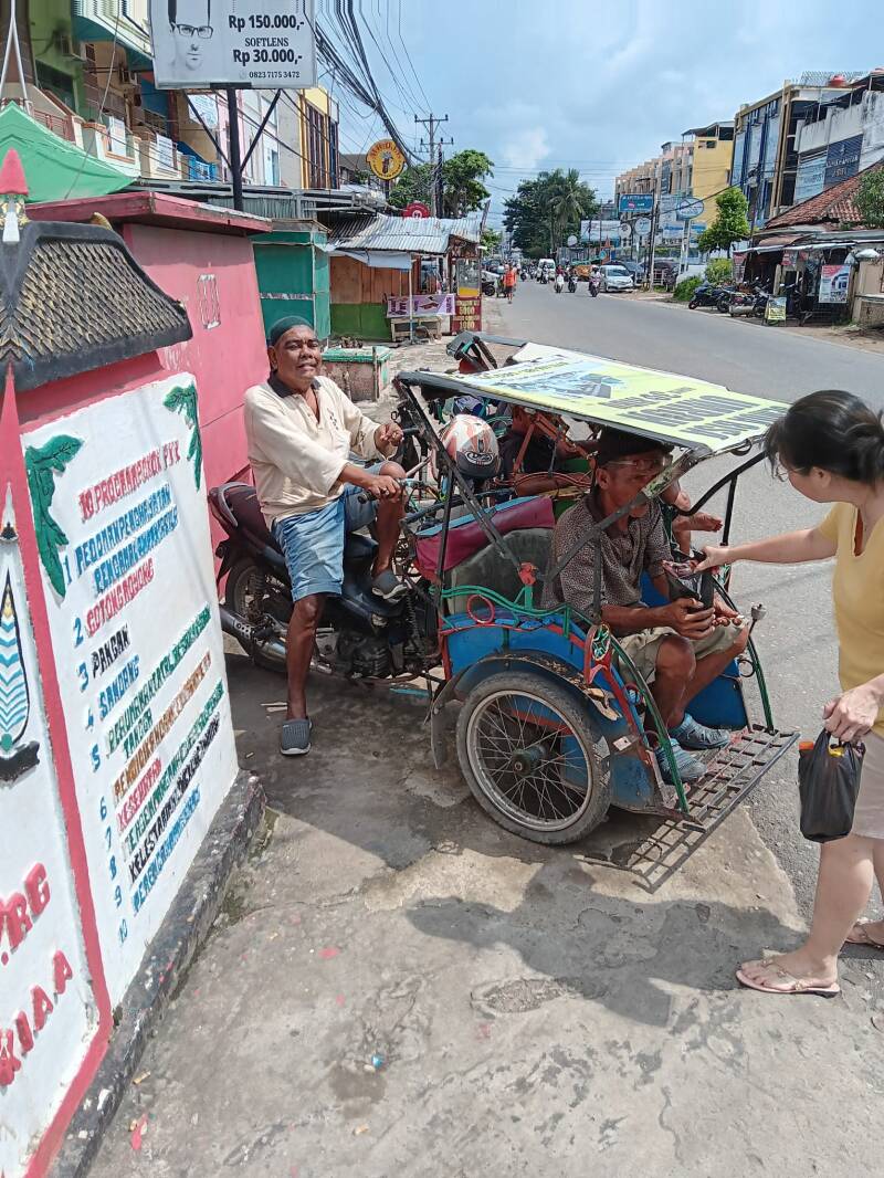 Zeven becakrijders krijgen een broodje en flesje Ice-tea