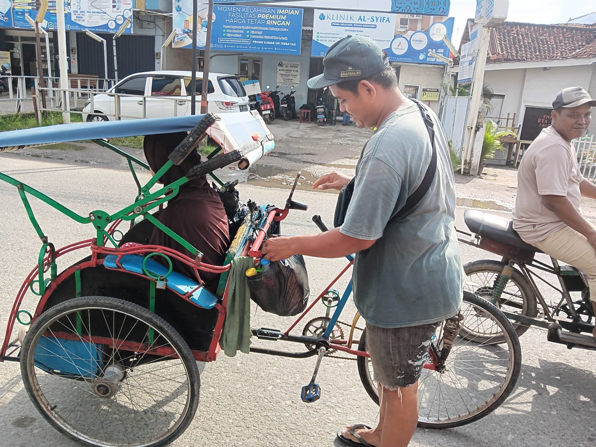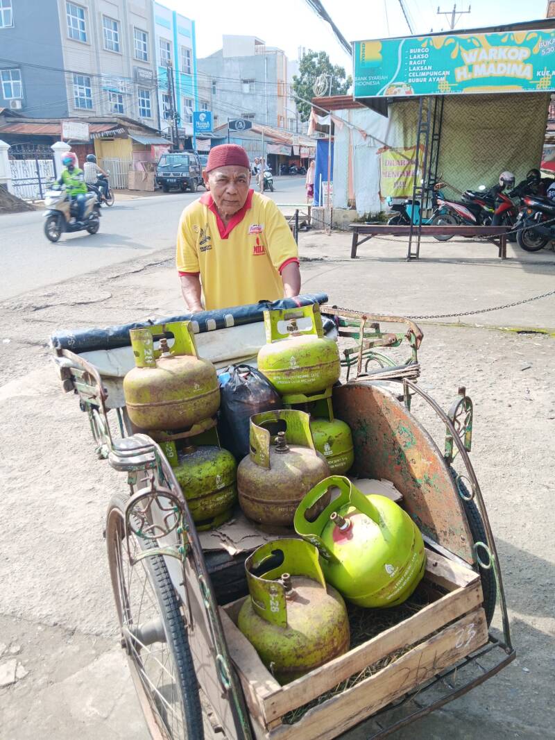 In Palembang verdienen veel becakrijders hun inkomen met het vervoeren van passagiers in een fietstaxi. Hun werk is volledig afhankelijk van dagelijkse ritten. Zij brengen mensen naar markten, scholen en woonwijken, vaak onder hoge temperaturen en in druk verkeer. Het inkomen is onzeker en fluctueert per dag.