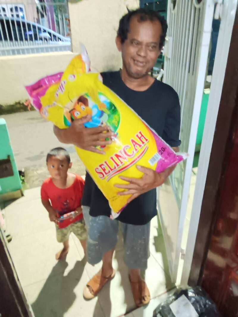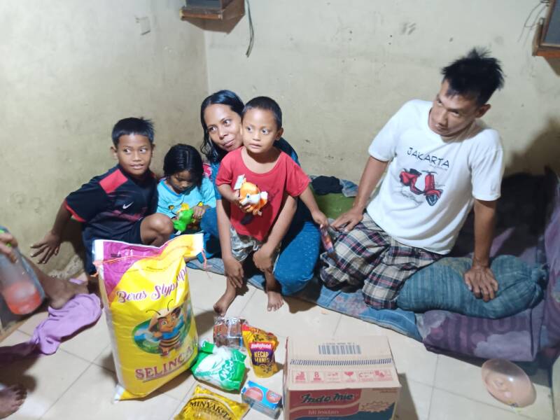 In hun piepkleine huisje van misschien 3 bij 3 meter verblijven momenteel 7 mensen: 3 kinderen, en 4 volwassenen. De armoede is zichtbaar. We gaven hun een zak rijst, een doos noedels, olie, suiker, melk en wat snacks. En ... natuurlijk knuffels voor de jongsten.