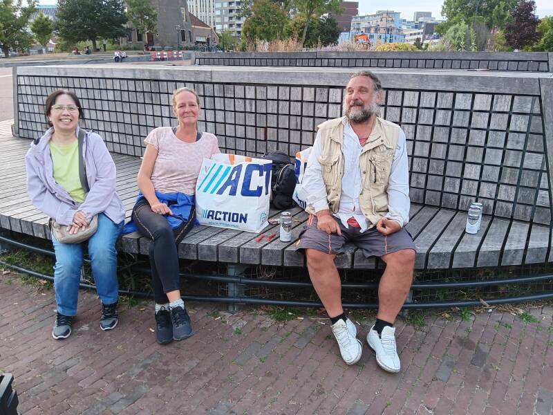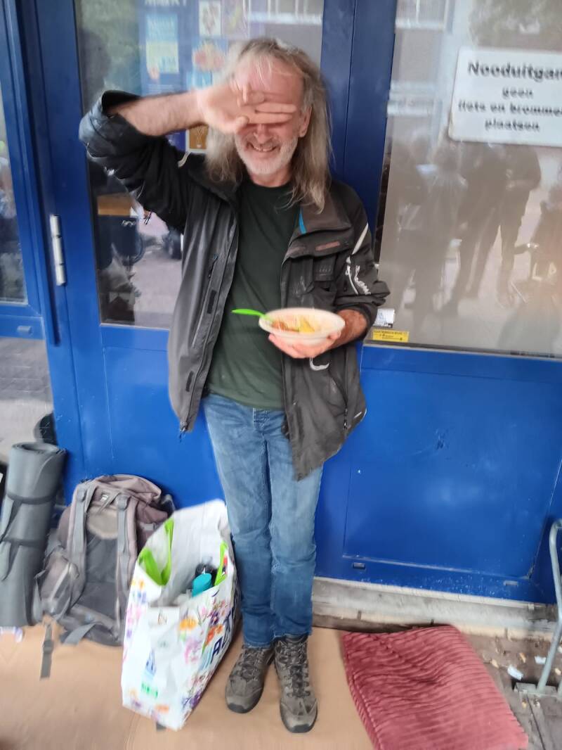 Op 27 augustus 2025 deelden we 18 gevulde tassen met allerlei producten uit aan daklozen in Leiden. We maakten een ronde door Leiden, samen met een medewerker van het Straatpastoraat, die ons begeleidde tijdens onze zoektocht naar daklozen. Het betrof vooal daklozen die niet in de opvang terecht kunnen, maar veelal leven in tentjes of op beschutte plekken zoals fietsenstallingen. In elke tas zaten tandpasta, tandenborstels, paracetamols, pleisters, shampoo, handzeep, deodorant, papieren zakdoekjes, pinda's, snoepjes, flesjes cola, brownies, rollen biscuits, chocolade repen, lippenbalsem, zonnebrandcrème, ondergoed en sokken.
